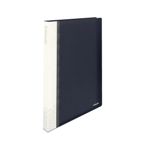 Carpeta de 80 fundas Esselte Vivida con capacidad para 160 hojas, tapas opacas rígidas de polipropileno 0,6 mm, color negro con etiqueta blanca en lomo para personalizar. Tamaño 234x310x41 mm